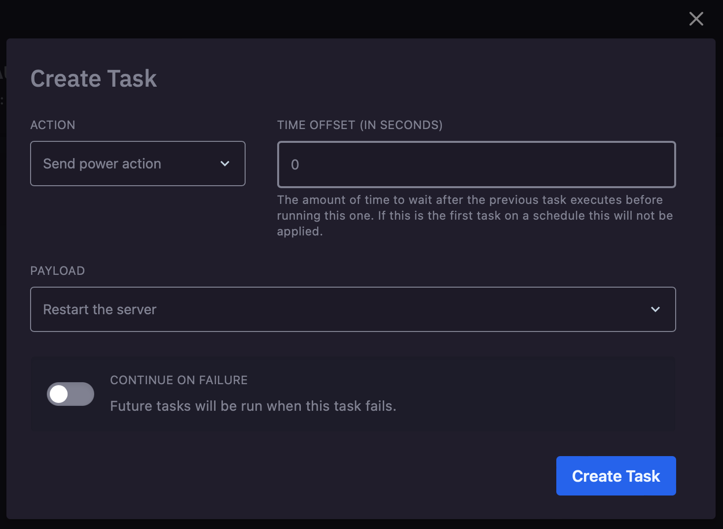 <figure><img src="https://4084758248-files.gitbook.io/~/files/v0/b/gitbook-x-prod.appspot.com/o/spaces%2FGcHR5Aks7PzvZEX7RVwh%2Fuploads%2FAU3I2xJq8pdfT7gAG0EP%2F2.png?alt=media&#x26;token=6d0bc9de-dde6-4d4c-965b-615768840ded" alt=""><figcaption><p>Setting what tasks on run at the time specified - in this case, it will restart the server.</p></figcaption></figure>