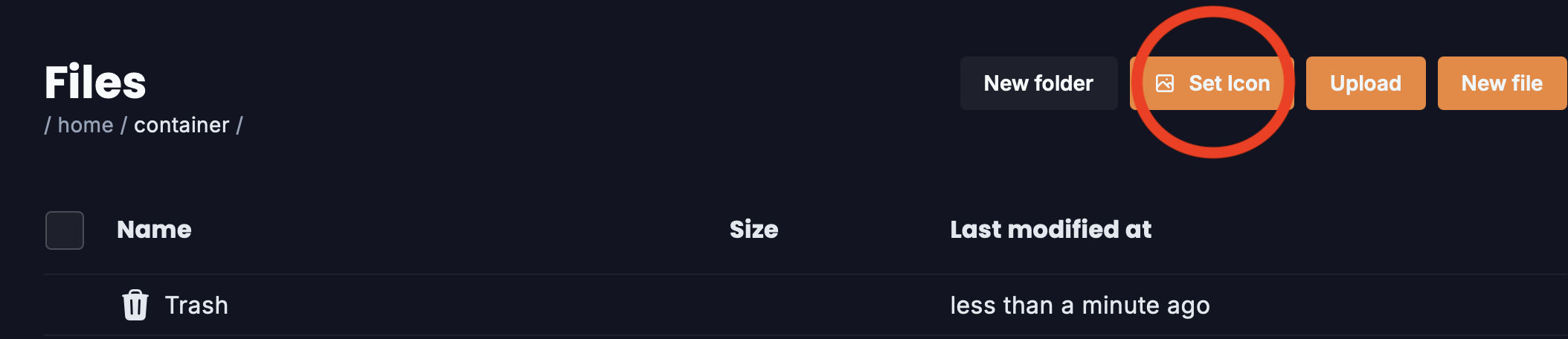 Once you have gone to the files tab (or successfully connected to your server via SFTP), upload your 64 x 64 server icon named `server-icon.png` to your server's home directory. This means that it should not be uploaded into any particular folder!
